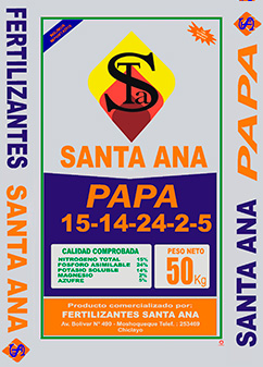 PAPA "SANTA ANA" es un producto cuyos componentes son: nitrógeno, fósforo, potasio, magnesio y azufre.